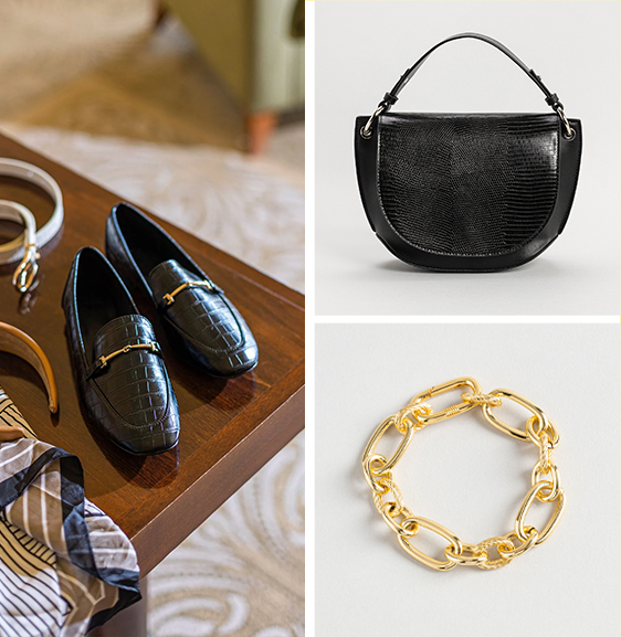 חצאית מקסי רקומה שתסובב ראשים, ג'קט מחויט, זוג מוקסינים מעודנים, צמיד חוליות מוזהב הורס ותיק היד הנכון. בונז'ור!